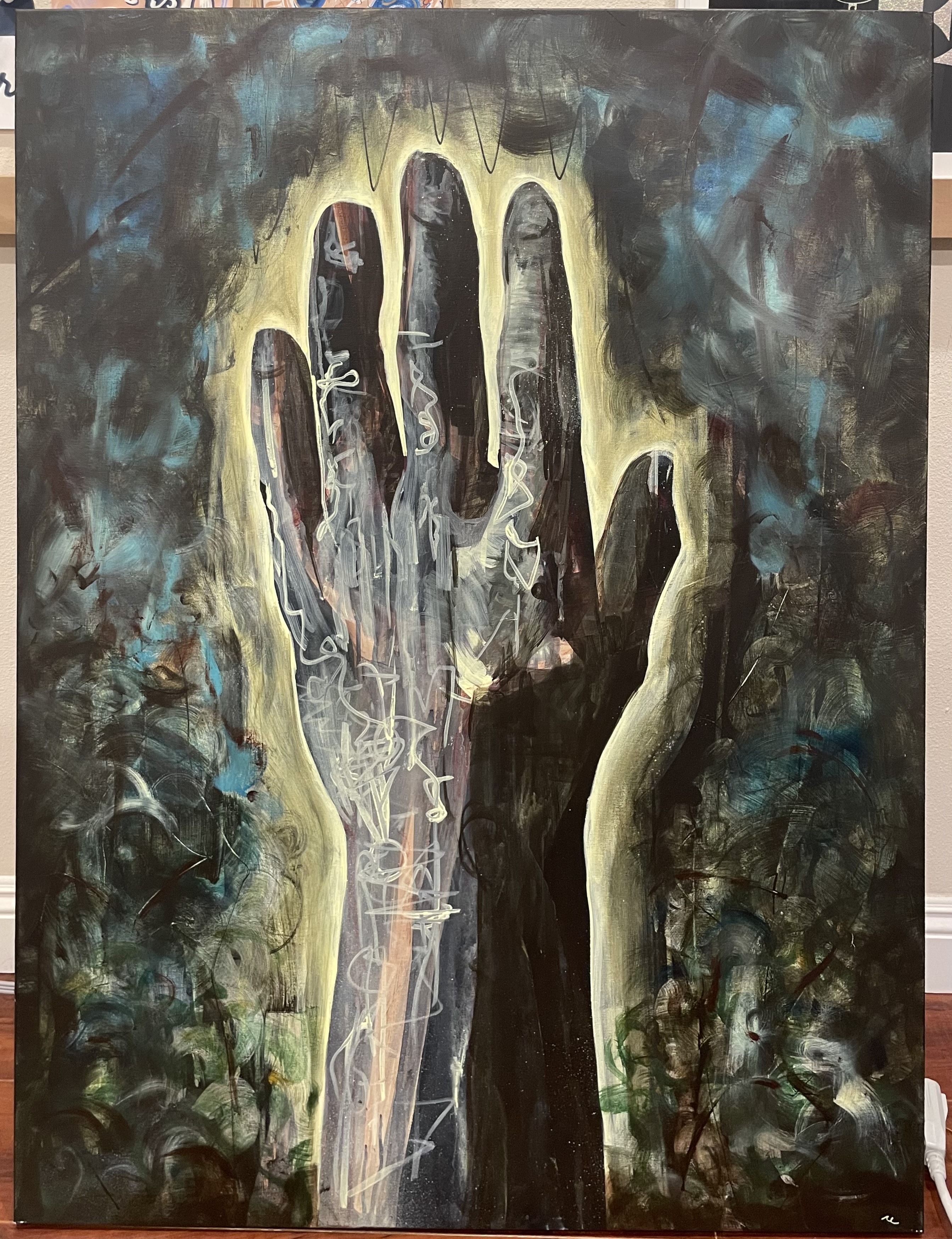 Collage, Ink, Acrylic, Rope, Cardboard, and Plywood